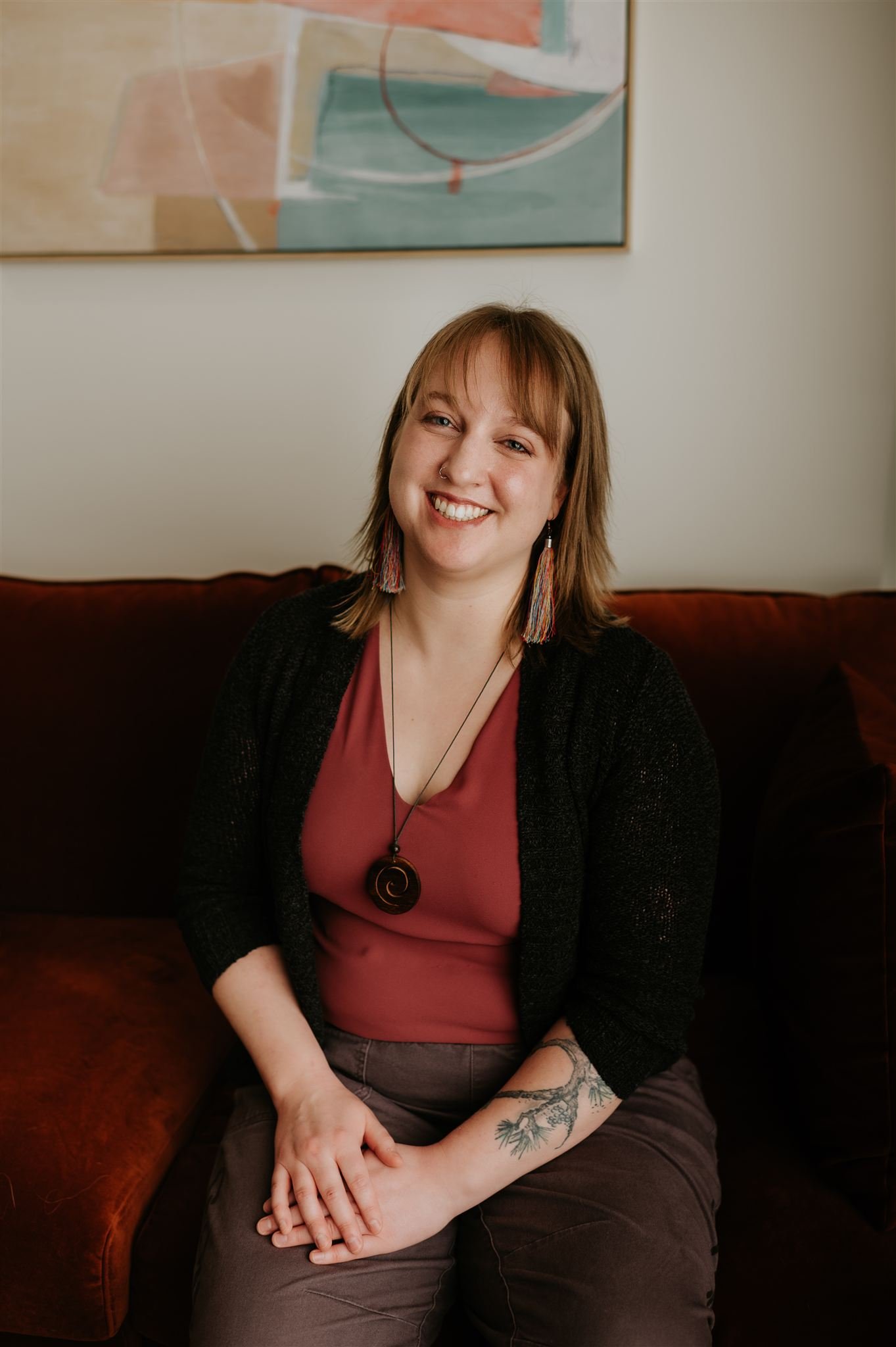 I’m easy to talk to, a big believer in humour, and am endlessly curious about the people I get to sit across from. I had a previous career in construction and engineering, and while therapy is very different work in many ways, at the core I’m a systems thinker who likes to make sense of complex problems. My work is informed by science and grounded in the real world, and I love a good diagram, chart, map, or doodle when it comes to communicating tricky concepts. I believe that having more than one way to interpret information makes it stick better, so if I can add visual or tactile elements, I will!